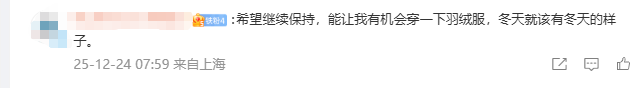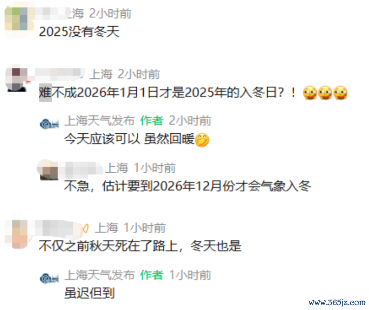 受冷空气影响 昨天夜间到今天清晨 申城飘了些小雨 今天白日上海以阴到多云天气为主 局部有些短时小雨 影响不大 ![]() 今天全天温差较小 在8~10℃之间 西北风4~5级 相对湿度95%~60% 体感又湿又冷 ![]() 当今崇明、青浦、金山、嘉定、奉贤、松江 等多个郊区发布寒潮蓝色预警 预测将来48小时内 大部街镇最低气温降幅可达8-10℃ 26日清晨最低气温 将下跌到零下2-3℃傍边 请留神御寒! ![]() 预测今天夜里起天外绽开 转为多云天气 ![]() 受束缚补充的冷空气影响,周四和周五,上海以多云天气为主,气温持续下行。周五气温最低,早间中心城区最低气温2℃傍边,郊区多在冰点以下。 双休日和下周初天气晴好,白日气温赶快回升,最高气温在13~15℃傍边。 月底到岁首,受冷暖轮流影响本市有一次降雨、降善良大风天气历程。 ![]() 网友:难不可2026年1月1日 才是2025年的入冬日?! ![]() ![]() ![]() 近期气温滚动 请天下实时疏通穿着 戒备伤风 也请多存眷左近预告 作念好出行及生涯的安排 详细上海天气发布、网友评述 |